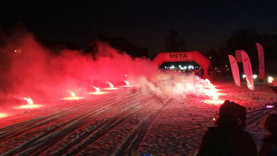 Na trasę zawodnicy ruszyli o godz. 6 rano, gdy było jeszcze ciemno. Startujących biegaczy z powietrza śledził dron, a przed całą grupą na rowerze jechał odpowiednio oznakowany pilot. Każdy z uczestników wyposażony był w kamizelki odblaskowe, urządzenia gps oraz mapę.