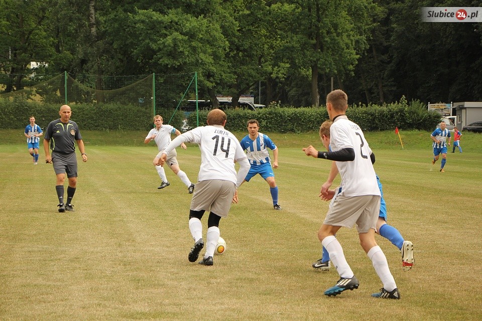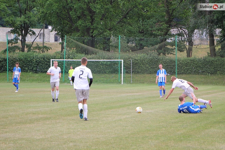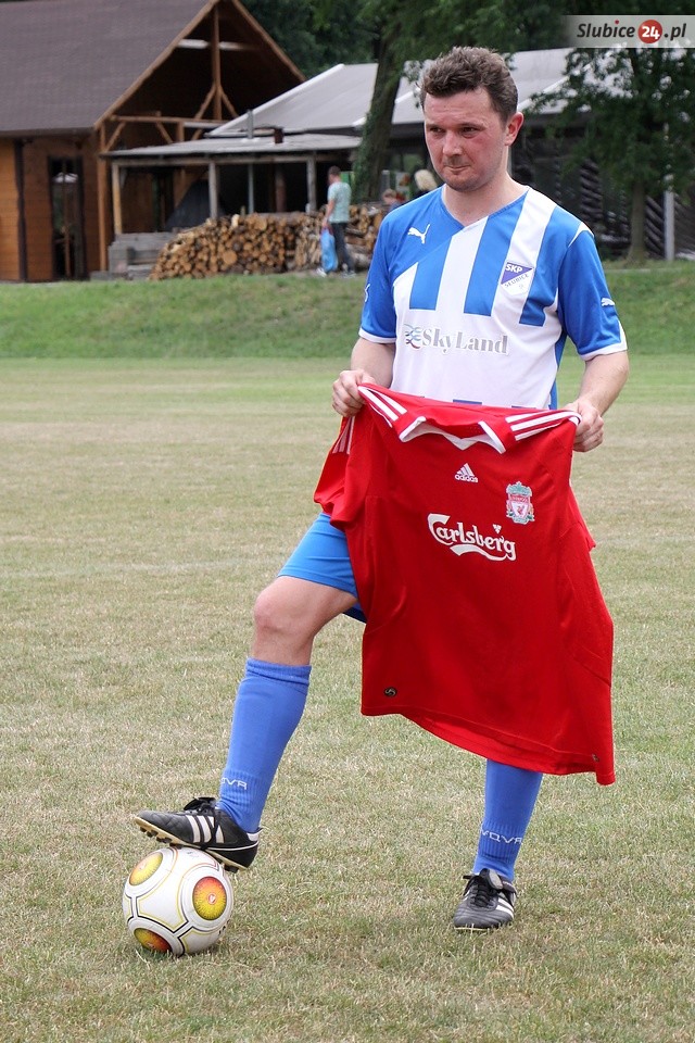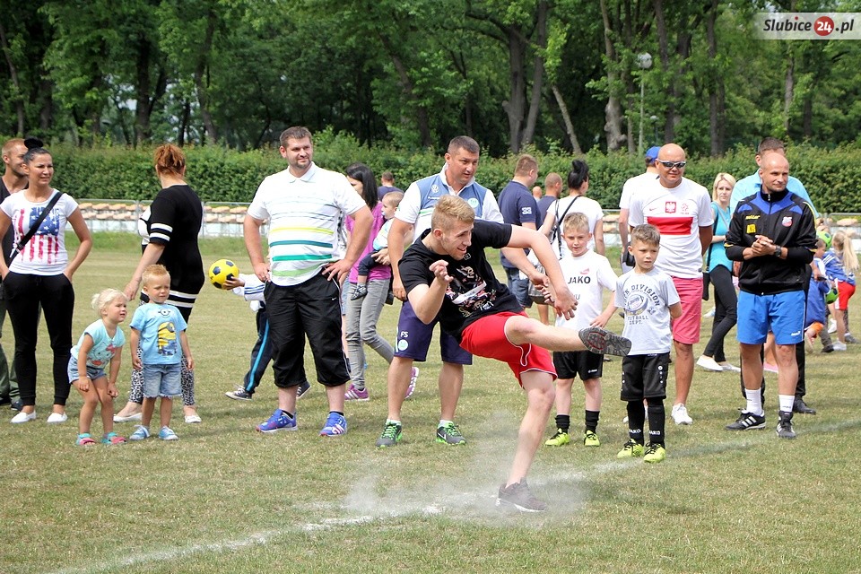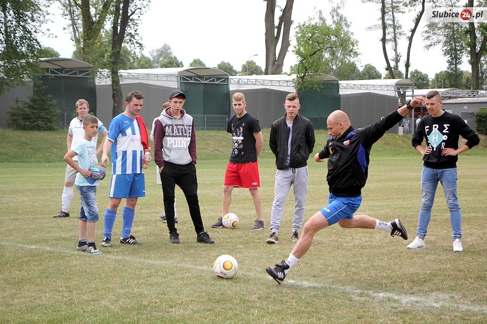 Następnie starsi kibice rywalizowali w znanym z programu "Turbo kozak" strzale z połowy boiska. I tu niespodzianka. Choć w szranki stanęli tacy uczestnicy jak były snajper SKP Słubice Daniel Małecki czy kapitan Polonii Słubice Radosław Kamiński, to konkurencję wygrał... 10-letni Oskar Ryszczuk, trenujący na co dzień w UKS Polonia Słubice. W nagrodę otrzymał oryginalną koszulkę FC Liverpool.