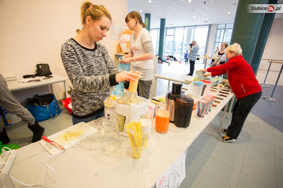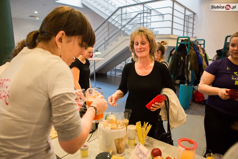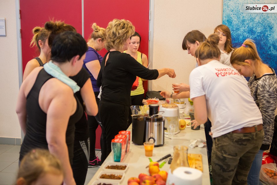 Solidna porcja aktywności fizycznej, to nie jedyna atrakcja, którą przygotowali organizatorzy. W tzw. międzyczasie można było spróbować (w zamian za datki finansowe) świeżo wyciskanych soków z owoców i warzyw, które przygotowały niezawodne członkinie Grupy Pomagamy. O zaopatrzenie w napoje zadbały także sympatyczne panie z frankfurckiej siłowni Clever Fit.