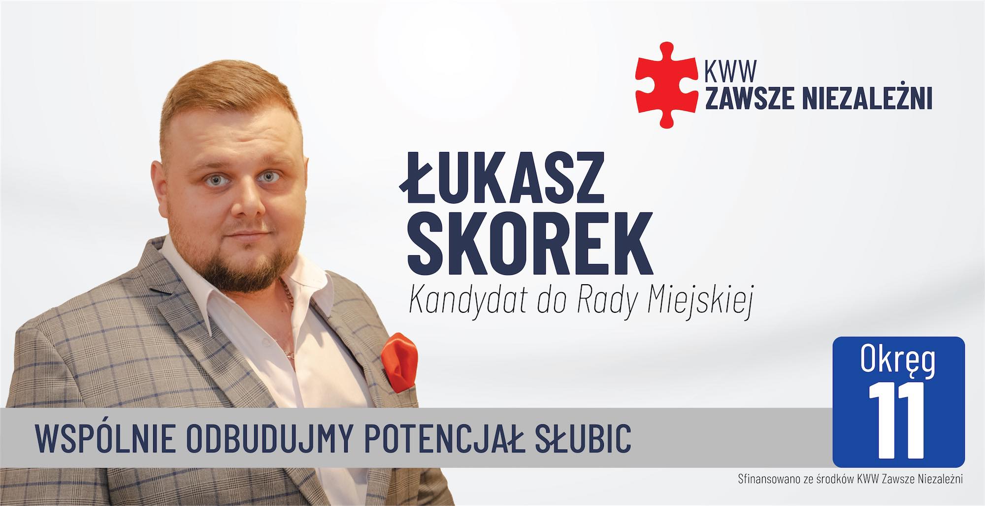 Łukasz Skorek, od lat związany z Ochotniczą Strażą Pożarną w Słubicach, to kandydat do Rady Miejskiej w Słubicach z okręgu wyborczego nr 11. Startuje z Komitetu Wyborczego Wyborców Zawsze Niezależni.